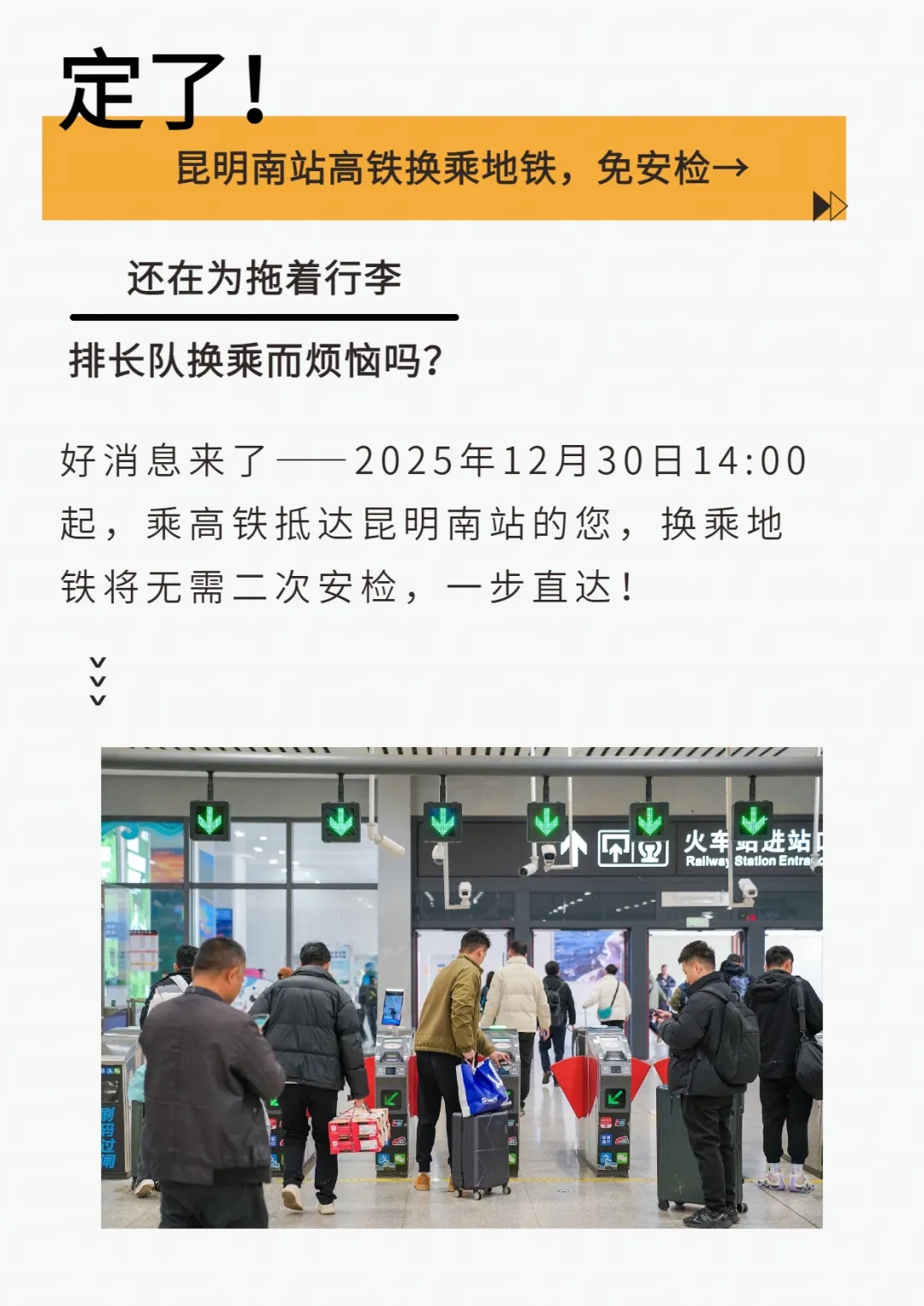 定了!昆明南站高铁换乘地铁,免安检→