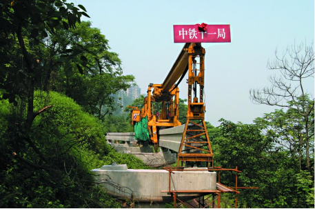 两难的选择没有让建设者们退缩。大家立足山地实际,潜心研发、自主创新,最终适配山地的“单轨架桥机”和“单轨运梁车”陆续问世。前者负责架设,后者负责运输,两台设备默契配合、精准作业,像穿针引线一般,一榀一榀架设轨道梁,在佛图关段复杂的地形中稳步推进,硬是把“不可能”变成了现实。