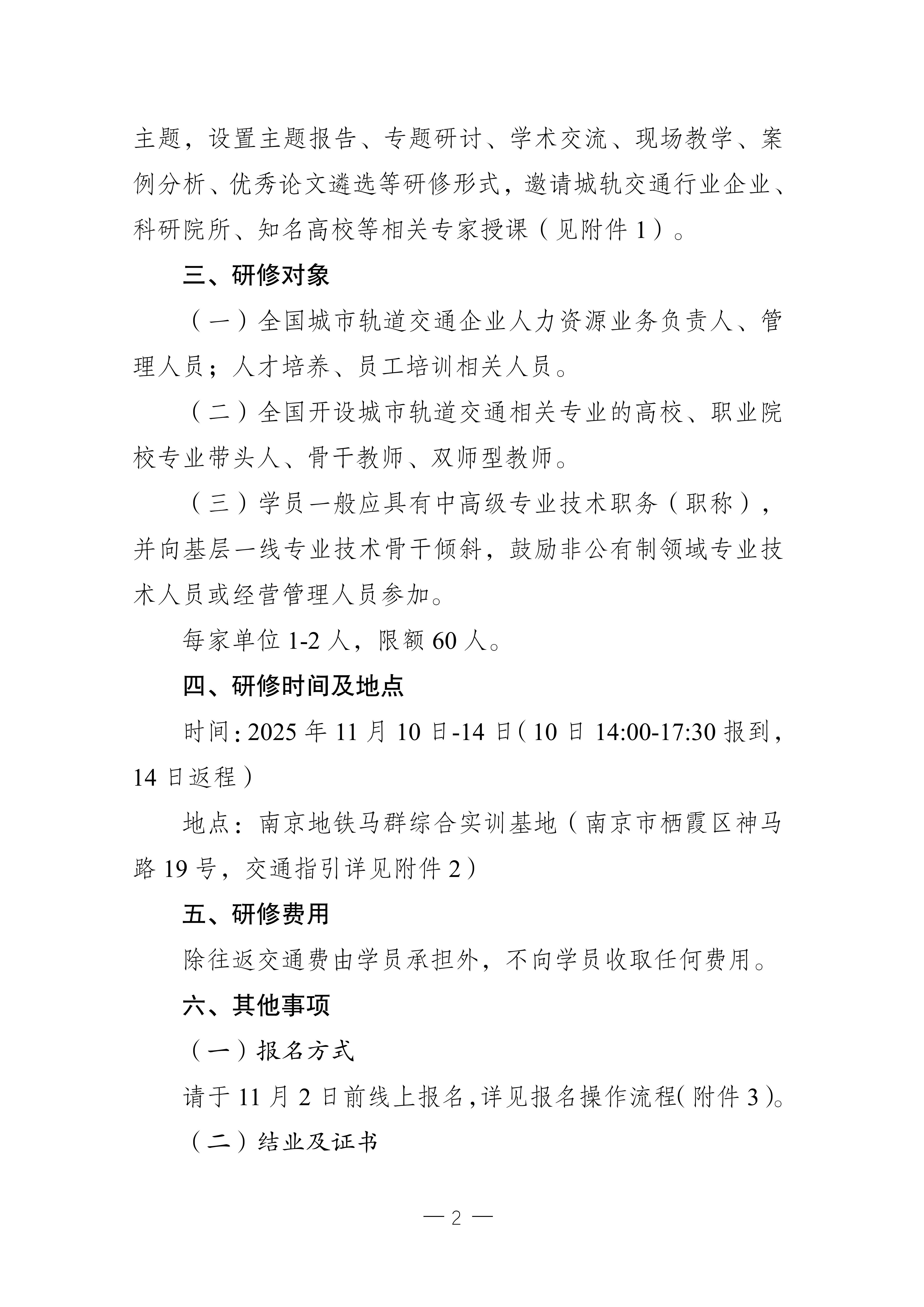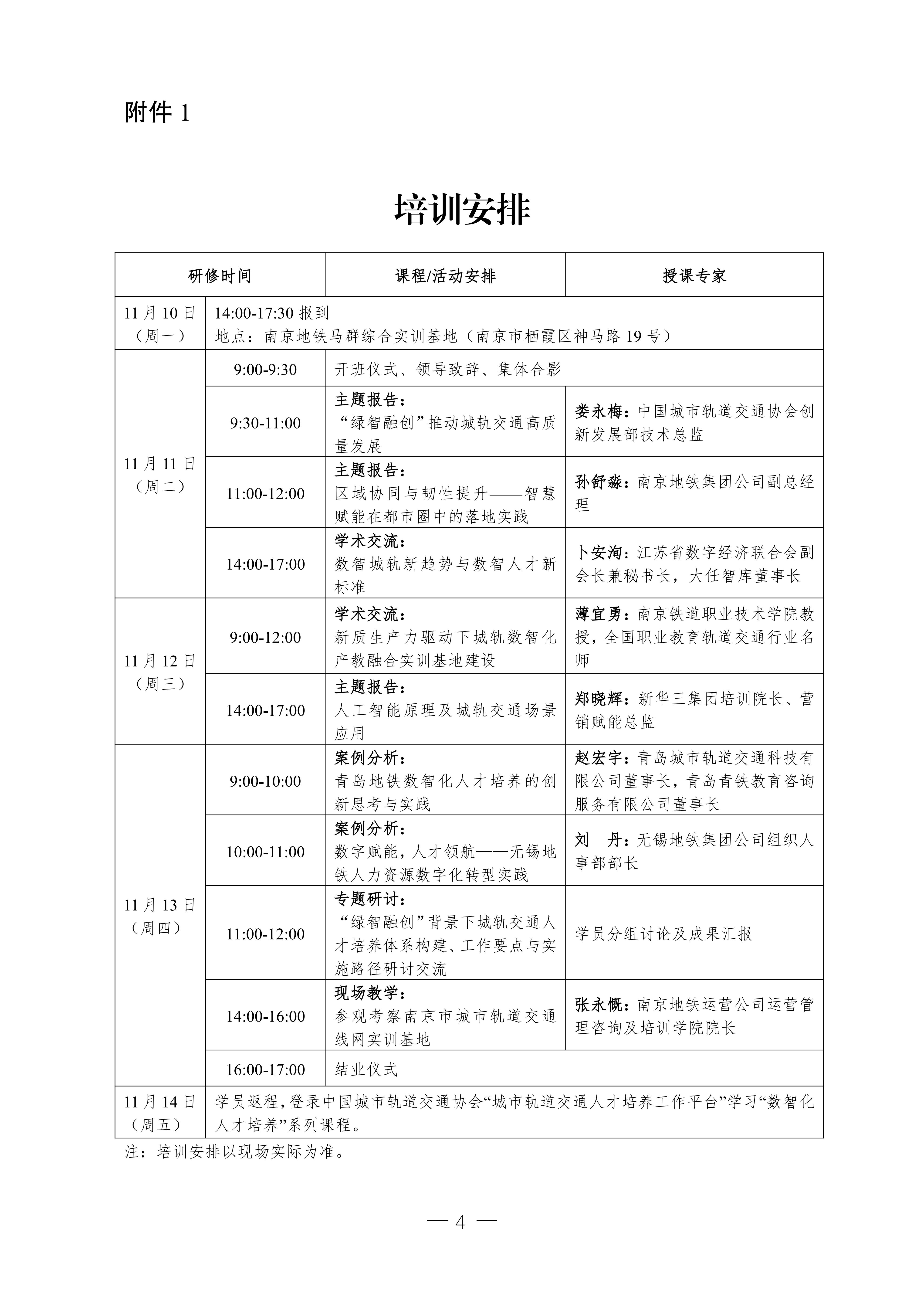根据《通知》要求及协会年度重点工作安排,高研班拟于11月10日—14日在南京举办,欢迎报名参加,共话新质生产力赋能新时代城轨发展,共探城轨数智化人才培养之道。