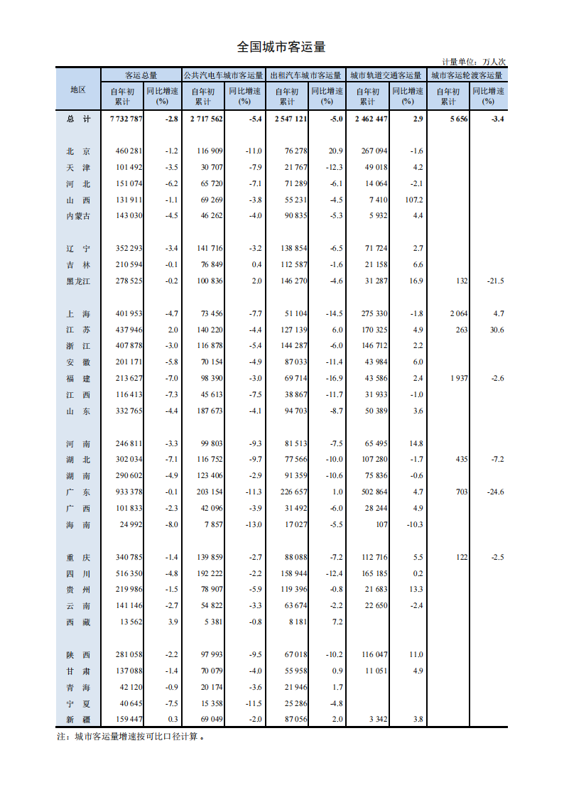 2025年1-9月全国城市客运量
